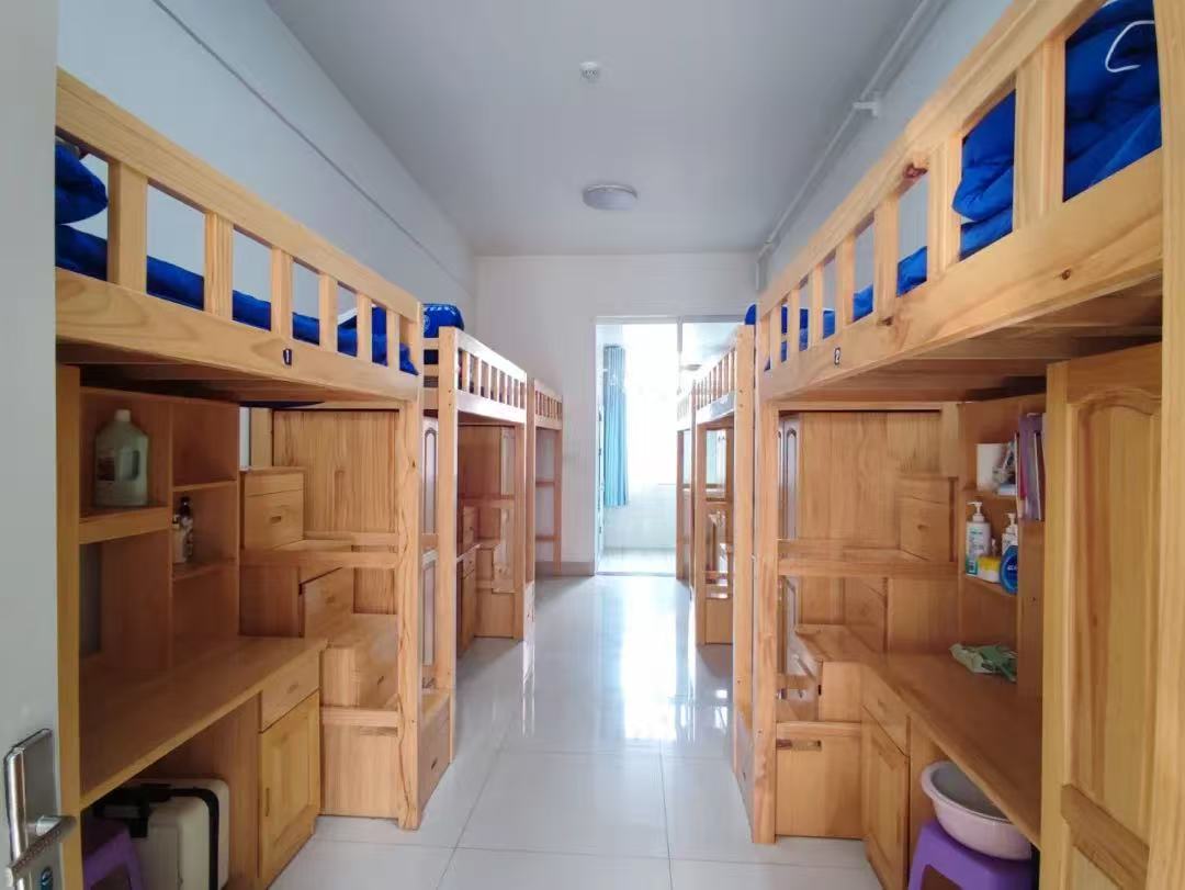 安全温馨的住宿: 学生公寓为标准六人间,配备中央空调、24小时热水和直饮水。干湿分离的独立卫生间和浴室,保障生活便利。